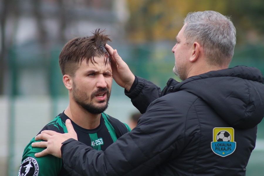 Nie wiemy, co powiedział w przerwie swoim zawodnikom trener gospodarzy Kamil Gabryś, ale jego zawodnicy dopiero co wyszli na drugą połowę i od razu po rozpoczęciu wyrównali stan meczu. Ładną, zespołową akcję zakończył ładnym i mocnym strzałem Hałady. No i wszystko zaczęło się od początku… Kibice gospodarzy mieli nadzieję, że teraz już jakoś pójdzie i padną kolejne bramki, tym bardziej, że w 55 minucie Karol Szulc trafił w słupek! Ale podobnie jak w pierwszej połowie, zamiast gola dla Wawelu zobaczyliśmy nawet nie gola, a gole dla Górników. W 57 minucie jeden z Górników oddał strzał na bramkę Wawelu, piłki jednak nie złapał Filip Baran i wypluł ją pod nogi Pawła Szołtysa i ten z bliska posłał ją do siatki. To trochę jakby ogłuszyło gospodarzy, bo chwilę potem było już 1:3. W 60 minucie bramkę, po strzale z bliska zdobył Roman Terbalyan. W 69 minucie mogło być 1:4, ale obrońca Wawelu wybił piłkę z linii bramkowej. Gospodarze ambitnie dążyli do strzelenia bramki kontaktowej, ale już nic się nie zmieniło. Zmieniła się za to ilość piłkarzy na boisku, bo w końcówce doszło – niepotrzebnie według nas – do przepychanki i Rafał Masgalik (Wawel) musiał opuścić plac gry.