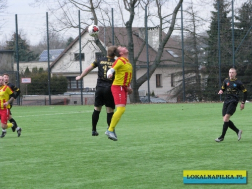 W pierwszej połowie nie oglądaliśmy bramek, ale obie drużyny stworzyły sobie sytuacje na ich strzelenie. Już w 10. minucie Orzeł mógł objąć prowadzenie, ale Tomasz Frankowski trafił w słupek. Goście z Lipin mieli swoje dwie minuty w 26 i 27 minucie, gdy najpierw Adam Ociepka nie trafił w bramkę z 5 metrów, a chwilę potem po woleju kapitana Naprzodu Grzegorza Szpitola piłka przeszła minimalnie na poprzeczką.