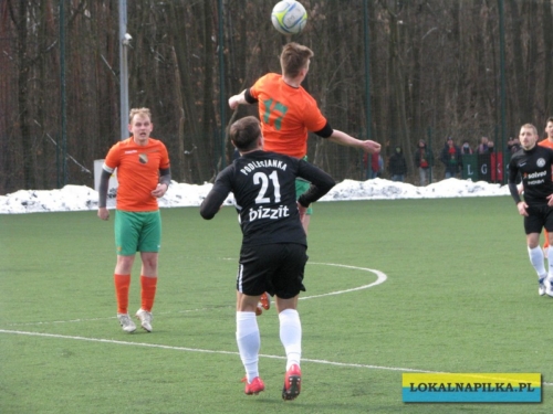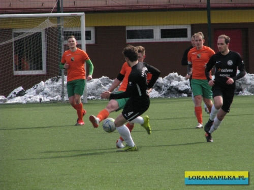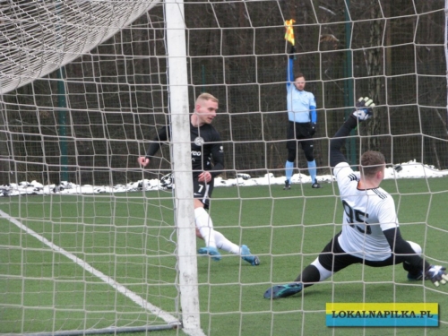 Od pierwszej minuty widać było większą determinację u gospodarzy. Szybko się to przełożyło na bramki i po 20 minutach było już 2:0 (D.Bąk i K.Honysz). Chwilę potem mogło być 3:0, bo jeden z zawodników gospodarzy trafił w słupek. Zamiast 3:0 było 2:1 do przerwy, bo ładnym uderzeniem z rzutu wolnego popisał się Kędzierski. Miał swoje szansę też Rosiński, ale bramkarz gospodarzy był na posterunku.