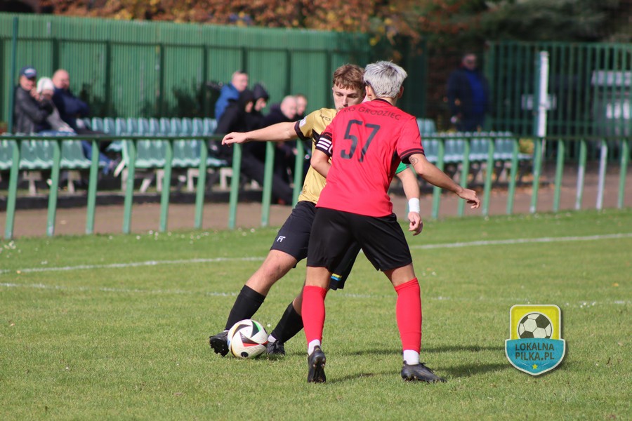 Druga część, dobrze rozpoczyna się dla grodźczan, bo w 49 minucie jest już 2:0. Wiktor Krzyżkiewicz na raty pokonuje Pieszczka. Gospodarze idą za ciosem. W 52 minucie Alan Dostał trafia w słupek. Zamiast 3:0, robi się jednak 2:1. W 59 minucie ładnym wolejem z ostrego kąta popisuje się – najlepszy tego dnia wśród gości – niezmordowany Bartłomiej Musiał. Teraz goście czują, że mogą wyrównać i jest blisko w 60 minucie, ale popularny Chmielu wybija piętką piłkę z linii bramkowej! Co nie udało się gościom, udało się piłkarzom Adriana Kardasia… W 71 minucie szybką kontrę kończy bramką Dostał i mieliśmy 3:1. Na 4:1 podwyższa w 81 minucie Adrian Koch, który dobija piłkę odbitą od słupka. Mecz zamyka w doliczonym czasie Zając, który z bliska zdobywa swoją drugą bramkę, a piątą dla RKS-u.