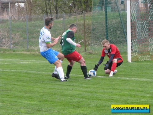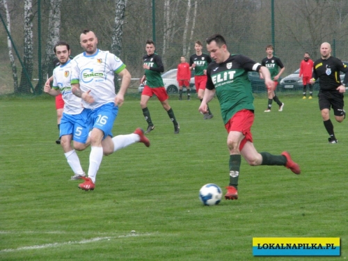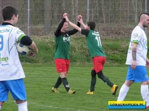 Przed meczem oglądając pomieszczenia klubowe, które do bardzo fajnego stanu doprowadził Prezes Jacek Bobrowicz, rzuciła mi się tablica w kształcie boiska, a na niej napisane INO 3 PUNKTY. Niestety chyba ten plan wypalił tylko na początku meczu, bo im dalej trwał mecz, tym gospodarze gorzej celowali w bramkę gości. W meczu tym było tyle sytuacji, że opisując wszystkie brakło by nam miejsca… Jak już wspomnieliśmy, lepiej w mecz “weszli” gospodarze, którzy po kwadransie prowadzili 2:0. Najpierw w 12 minucie strzałem z bliska popisał się Michał Kaczmarek, a w 15 minucie technicznym lobem popisał się Jacek Kudlek. W tym momencie sygnał swoim kolegom dał Łukasz Baran, który raz po raz ostrzeliwał bramkę gospodarzy, ale dobrze bronił w tym okresie Kamil Gajoch. W końcu Baran wywalczył rzut karny, którego na bramkę zamienił Łukasz Wolf (39 min.) i ta bramka przed końcem pierwszej połowy dała kopa gościom na drugą połowę.