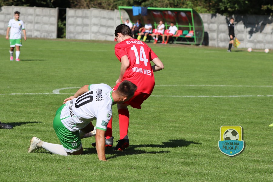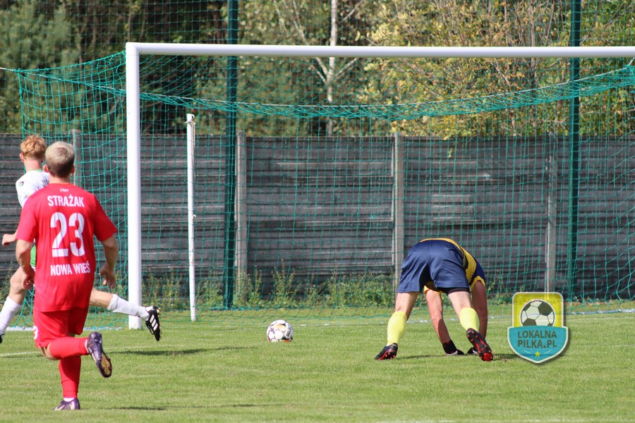 W niedzielne, słoneczne przedpołudnie, na boisku Strażaka Nowa Wieś spotkały się dwie drużyny, z których jedna nie przegrała, a jedna jeszcze nie wygrała. I to zostało podtrzymane po tym spotkaniu, ponieważ gospodarze przegrali kolejne, piąte spotkanie (trzecie u siebie) 1:6. Gospodarze nie rozpieszczają kibiców, ale Ci nie mogą narzekać, bo przychodząc na mecz mogą spróbować miejscowych wypieków, albo…. wybrać się w przerwie na grzyby do pobliskiego lasu…My, spróbowaliśmy i ciasta, i poszliśmy na grzyby, ale oczywiście po meczu. Napiszemy tylko, że z pustymi rękami nie wyszliśmy z lasu. Z kolei goście, obserwowani przez swojego niezawodnego Prezesa Marcina Malinowskiego zrobili swoje… Pewna kolejna wygrana i miejsce wicelidera, zaraz za rezerwami Górnika Wojkowice, który prowadzi z kompletem pięciu zwycięstw.