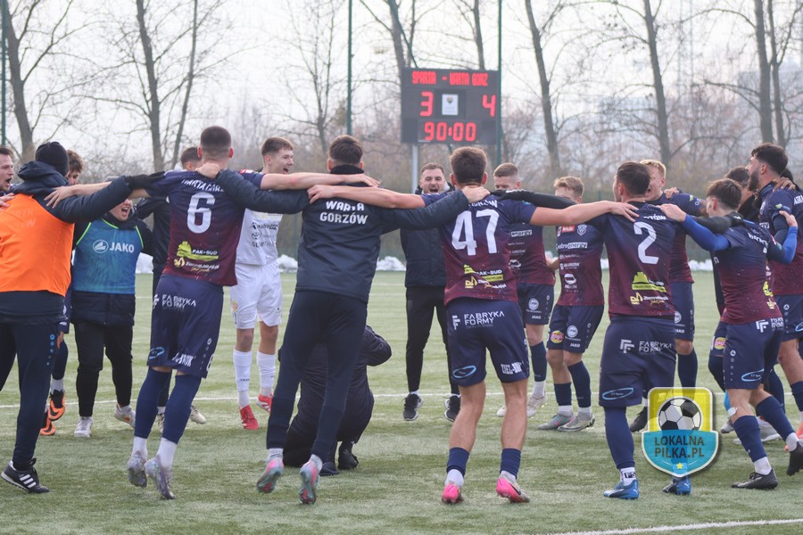 Druga połowa, zaczęła nam się od pięknej bramki głową Cypriana Włodarczyka (53 min.) i gospodarze wyszli na prowadzenie 2:1. Trzy minuty później oglądamy szybką kontrę Sparty i Mazurek mocnym uderzeniem podwyższa wynik na 3:1. Warta odpowiada szybką bramką w 61 minucie Mateusza Posmyka, który posyła piłkę obok wychodzącego Bartosza Kucharskiego. W 66 minucie kapitalną okazję miał Daniel Paszek, ale trafia w bramkarza gości. Zamiast 4:2, zrobiło się 3:3, po kapitalnym uderzeniu Adriana Marchela z 20 metrów w samo okienko bramki strzeżonej przez Kucharskiego, który zresztą się wyciągnął jak struna, lecz nie sięgnął piłki. Gdy wszyscy obecni na stadionie myśleli, że mecz zakończy się remisem, goście zadali decydujący cios! W doliczonym czasie gry, Jakub Iskra popisał się mocnym uderzeniem z 12 metrów pod samą poprzeczkę i wyprowadził swój zespół na prowadzenie 3:4! Za chwilę sędzia skończył mecz i goście odtańczyli zwycięski taniec na środku boiska.