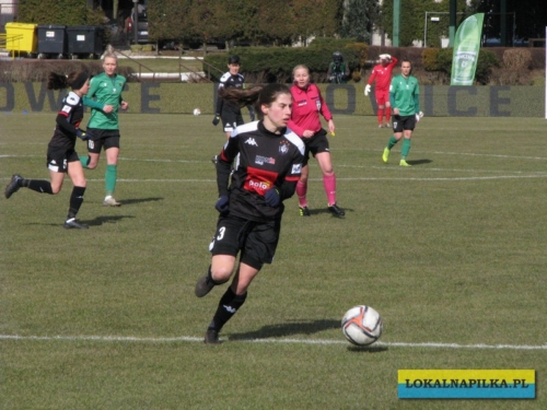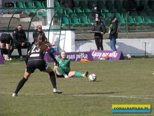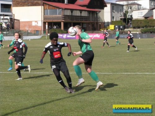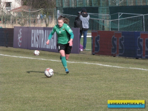 Obie drużyny przystąpiły do tego spotkania osłabione i widać było, że nie są jeszcze w takiej formie w jakiej by się je chciało oglądać. Pierwsza połowa słaba i niestety poważnej kontuzji doznała w niej zawodniczka z Konina Dominika Kopińska (Życzymy dużo zdrowia i szybkiego powrotu na boisko!) W drugiej połowie padła jedyna bramka meczu, a zdobyła ją dla gości strzałem głową Kanadyjka Alicia Tamburro. Był to debiut w oficjalnym spotkaniu tej zawodniczki i pierwszy gol w Ekstraklasie. Gospodynie miały również swoje sytuacje (Klaudia Miłek i Kinga Kozak), ale dobrze broniła w bramce Medyka młoda Oliwia Szymczak, która zastąpiła w bramce pauzującą za czerwoną kartkę Sapor. Według nas, to bramkarka gości zasłużyła na miano najlepszej zawodniczki meczu.
