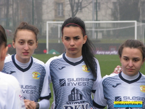 W drugiej połowie zobaczyliśmy już to, co kibice lubią najbardziej, czyli bramki… Pierwsza padła już w 51 minucie. Gospodynie źle rozegrały rzut rożny i straciły piłkę. Piłkarki Medyka przeprowadziły wzorową kontrę. Piłkę na skrzydło dostała Julia Maskiewicz i wrzuciła ją w pole karne, tam znakomitym wolejem popisała się Natalia Chudzik i zrobiło się 0:1 i zrobił się mecz…W 53 minucie powinien być chyba rzut karny dla gospodyń, bo Maskiewicz faulowała Andree Horvathovą jak nie w polu karnym, to na pewno na linii pola karnego, ale sędzia Musiał podyktował “tylko” rzut wolny, który zmarnowała Wiankowska, bo piłka po jej strzale trafiła w mur i wyszła na aut. Do rzutu rożnego podeszłą Dorota Hałatek i po jej wrzutce zakotłowało się, tak, że po strzale Slukovej Abambila wybiła piłkę z linii bramkowej. Chwilę potem stoickim spokojem popisała się dobrze tego dnia broniąca Szymczak, która złapała wysoko piłkę na linii bramkowej i nie dała się przepchnąć piłkarkom Czarnych. Ten moment przewagi Czarnych został nagrodzony bramką. W 60 minucie Sandra Sałata fauluje Jędrzejewicz i tym razem sędzia Musiał dyktuje rzut karny, który na bramkę zamienia Wiankowska. W odpowiedzi w 65 minucie Alexis Mugica popisała się ładną główką, ale piłka przeszła obok bramki. To był sygnał, że Medyk się nie zadowoli remisem. I w tej samej minucie Anna Gawrońska popisała się kapitalnym lobem – w towarzystwie trzech sosnowiczanek – nad Anną Szymańską wyprowadzając swój zespół na prowadzenie. W 75 minucie Czarne wykonywały rzut wolny, ale piłka po strzale Horvathovej poszybowała nad poprzeczką. W 78 minucie Wiankowska z 5 metrów popisała się wolejem, niestety obok dla sosnowiczanek obok słupka. W odpowiedzi w 84 minucie Chudzik uderzyła minimalnie nad poprzeczką. W 88 minucie mogła wyrównać Jędrzejewska, ale piłkę po jej strzale wybiła dobrze ustawiona Maskiewicz. Co nie udało się Czarnym, udało się w 90 minucie Medykowi. Znów strata sosnowiczanek po swoim rogu. Piłkę przejęła Daria Nowak i założyła “siatkę” Klaudii Tobiczek, następnie podała do Michalopoulou, ta przebiegła z piłką w towarzystwie Julii Wycisk z 30 metrów i bez problemów skierowała piłkę obok wybiegającej Szymańskiej. Tym sposobem pierwsza porażka w tym sezonie Czarnych stała się faktem, ale patrząc na historię meczów sosnowiczanek z Medykiem u siebie można rzec, że tradycja nie wygrania z Nimi została podtrzymana…