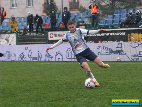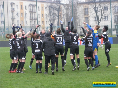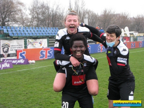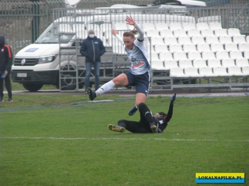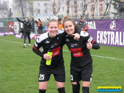 W pierwszej połowie nie oglądaliśmy bramek, ale kilka sytuacji podbramkowych widzieliśmy. W 3 minucie Martyna Wiankowska wywalczyła rzut rożny. Po centrze w pole karne do piłki wyskoczyła Agnieszka Jędrzejewicz i uderzyła głową, ale słupek asekurowała Ernestina Abambila i spokojnie przejęła piłkę. W 10 minucie Jędrzejewicz oddała strzał, ale Oliwia Szymczak obroniła. W 13 minucie piłkarki Czarnych przejęły piłkę i w znakomitej sytuacji znalazła się Veronika Slukova, ale fatalnie spudłowała. W 17 minucie ponownie Jędrzejczyk uderzała, ale piłka poszybowała nad poprzeczką. W drugiej części pierwszej połowy do głosu doszły piłkarki Medyka i w 27 minucie na ładny strzał z daleka zdecydowała się Alicia Tamburro, piłka minimalnie minęła spojenie słupka z poprzeczką. W 44 minucie sędzia spotkania Tomasz Musiał zamiast rzutu karnego pokazał żółtą kartkę Slukovej za próbę wymuszenia rzutu karnego. Zasłużony remis do przerwy.