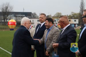 Zanim rozpoczął się mecz, Prezes Podokręgu Sosnowiec Józef Grząba przywitał wszystkich zgromadzonych kibiców, oraz znane i ważne osobistości, które pojawiły się na tym meczu.