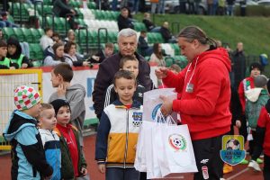 Nie zapomniano również o małych dzieciakach, dla których działacze Podokręgu Sosnowiec Dariusz Wrona i Janusz Półtorak przygotowali w przerwie zabawy z piłką, a następnie podarowali im małe prezenty.